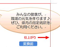 余白なしてギリギリまで背景に画像や塗りがある場合、拡大での対応となりますので、文字は5mm程度内側に配置して下さい。